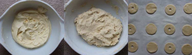 Roll out the dough to 1/8-in. thickness. Cut shapes into the rolled-out dough using a cookie cutter.