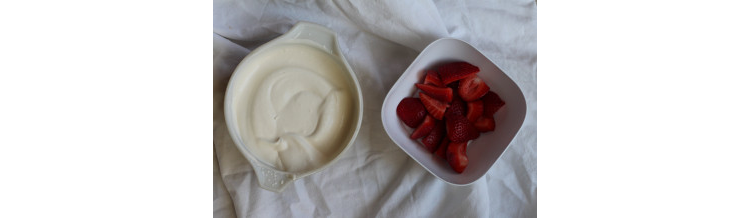 Top the whipped cream with the strawberries, then drizzle on the honey (about ½ tbsp per bowl).
